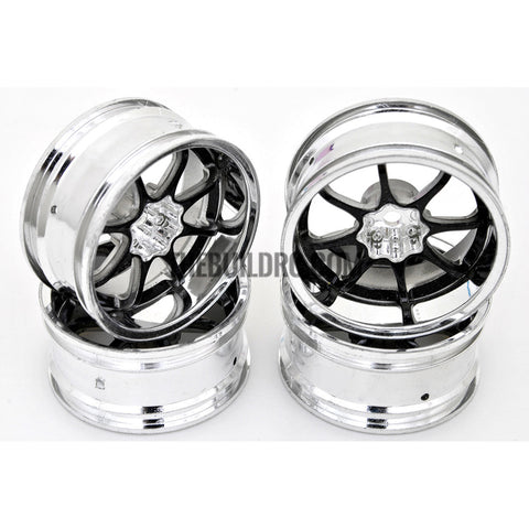 1/10 RC Car 8 Spoke 9mm Offset Drift 26mm Wheel Rim Set - Black