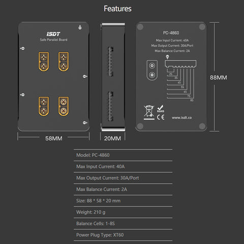 iSDT PC-4860 1-8S Safe Parallel Board XT60 Plug Parallel Balance Charging Board