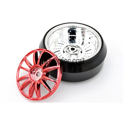 1/10 RC Car 12 Spoke 3mm Offset DRIFT Sporty Wheel with Diamond Irregular Cut DRIFT Tyres / Tires 4pcs - Red