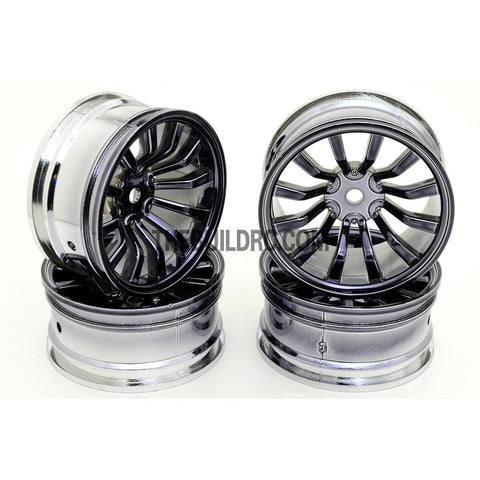 1/10 RC Car 26mm 12 Spoke 6mm Offset DRIFT Metallic Wheel Rim 4pcs - Titanium