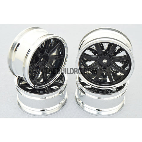 1/10 RC Car 26mm 8 Removeable Spoke 2mm Offset DRIFT Sporty Wheel 4pcs - Silver / Black