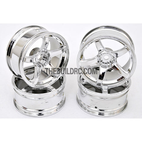 1/10 RC Car 5 Spoke 6mm Offset 26mm Drift Wheel Rim Set - Silver