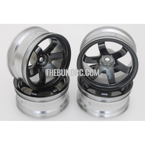 1/10 RC Car 6 Spoke 6mm Offset Drift 26mm Wheel Rim Set - Black